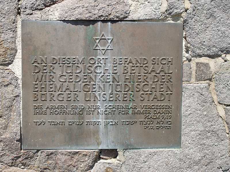 In der Pauritzer Straße erinnert eine Tafel an den ehemaligen jüdischen Betsaal mit den Sätzen: