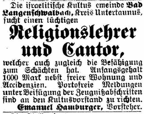 aus der Zeitschrift „Der Israelit“ vom 29.Aug. 1898 und „Allgemeine Zeitung des Judentums“ vom 31.Aug. 1900