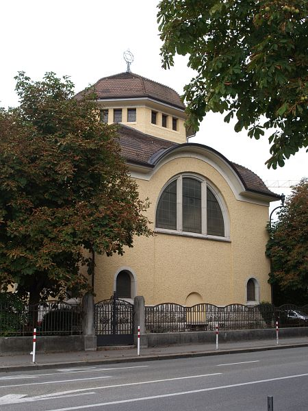 Seit Ende der 1840er Jahre konnten sich Juden wieder in der Stadt niederlassen, nachdem das neue „Fremdengesetz“ im Kanton Aargau in Kraft getreten war. Die Gründung einer israelitischen Kultusgemeinde in Baden erfolgte im Jahre 1859 durch die Oberhäupter von zehn Familien. Unmittelbar danach richtete die kleine orthodox ausgerichtete Gemeinde in der Weiten Gasse einen Betraum ein, und im Jahre 1873 übersiedelte die größer gewordene jüdische Gemeinschaft in Räumlichkeiten des Gemeindemitglieds Bernhard Guggenheim. Es dauerte nicht lange, bis auch erste Pläne für einen Synagogenbau geschmiedet wurden, doch sollten noch mehr als drei Jahrzehnte vergehen, ehe diese umgesetzt werden konnten. Die Finanzierung wurde durch einen Synagogenfonds gesichert, der von Privatpersonen und Organisationen - auch weit außerhalb der Landesgrenzen - gezeichnet wurde. Die festliche Einweihung der Synagoge mit ihren 120 Männer- und 60 Frauensitzen – ein Entwurf des Badener Architekten Otto Dorer und Baumeisters Adolf Füchslin - fand unter großer Beteiligung am 2.September 1913 statt.