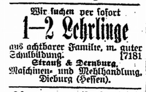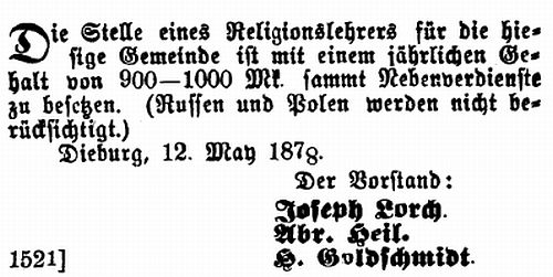 Stellenanzeigen in der Zeitschrift "Der Israelit" vom 5. Juni 1878 und vom 24. Nov. 1927