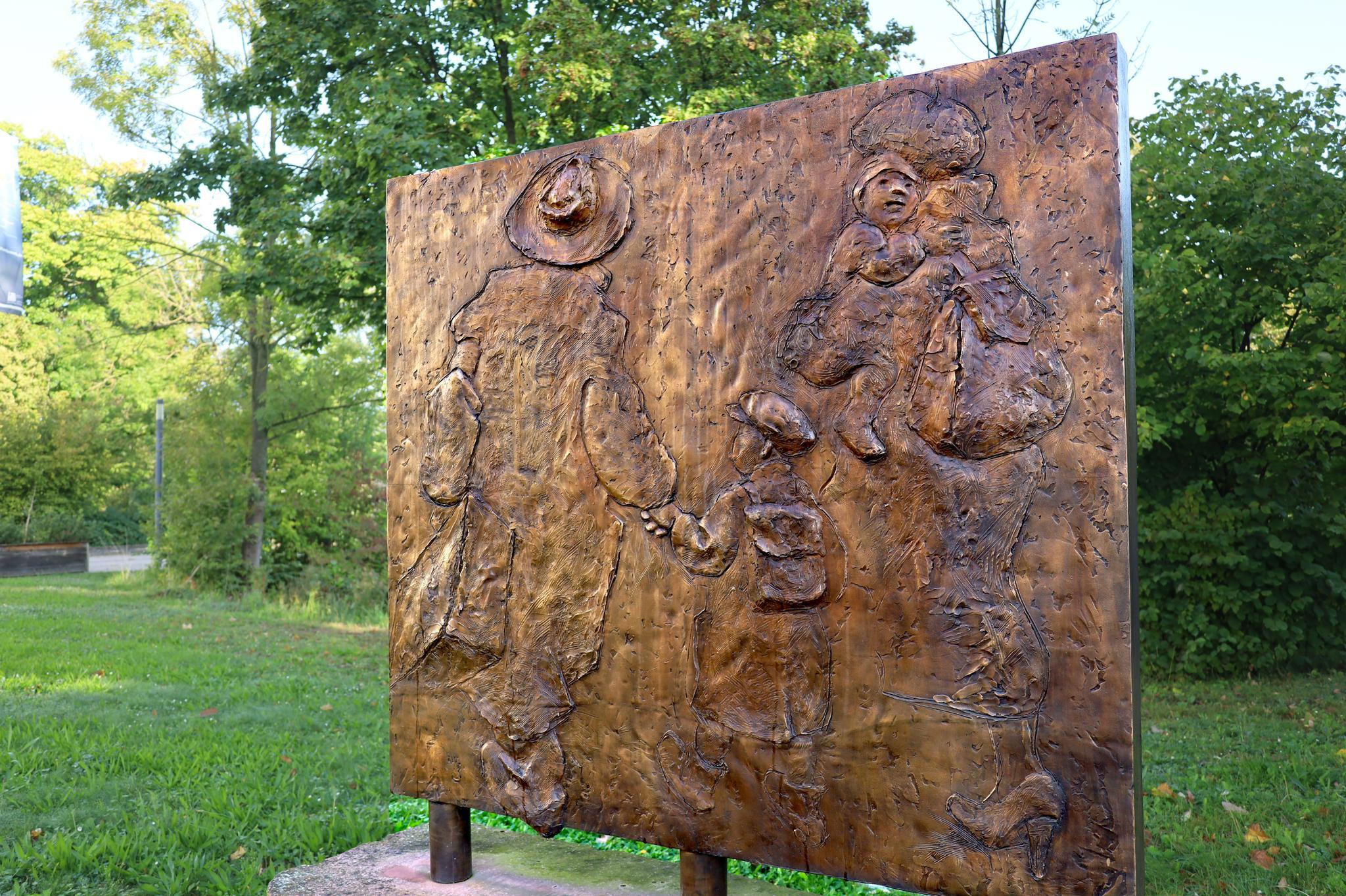 Nahe der jetzigen Gedenkstätte am Fechenbachpark wurde 2016 – nach jahrelangen Vorbereitungen - ein mannshohes Bronzerelief, ein „Gedankenstein“ des Dieburger Künstlers Martin Konietschke, aufgerichtet. Auf der Rückseite des Reliefs sind die Namen jener jüdischen Mitbürger eingraviert, deren Vertreibung und Tod dokumentiert ist.