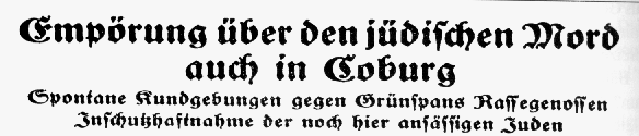Die von Anhänger des „Deutsch-Völkischen Schutz- und Trutzbundes” verbreitete antisemitische Propaganda fiel in Coburg schon in der Anfangszeit der Weimarer Republik auf fruchtbaren Boden; so wurde in der Stadt Coburg 1919 eine Ortsgruppe gegründet, die zeitweise mehr als 400 Mitglieder zählte. Die „Coburger Zeitung” galt als Sprachrohr der antisemitischen Hetze. Größere Veranstaltungen der NSDAP fanden schon vor 1923 enormen Zulauf; Coburg wurde einer der Hochburgen der Nationalsozialisten und war 1929 eine der ersten Städte, die von einem NSDAP-Bürgermeister regiert wurden.