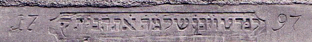 Über dem Eingang des ehemaligen Synagogengebäudes, das im Laufe der Zeit verschiedene Nutzungen besaß, war früher eine hebräische Inschrift angebracht, die auf dessen Nutzung seit 1797 verwies.