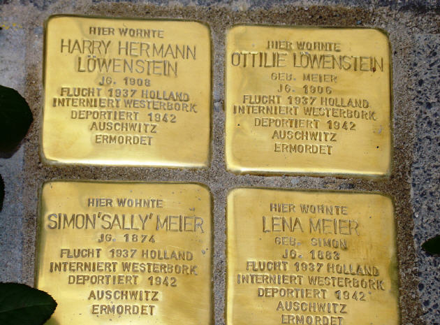 "Stolpersteine" verlegt in der Siegstraße und Maibergstraße (Aufn. T., 2015, aus: wikipedia.org, CC BY-SA 4.0)