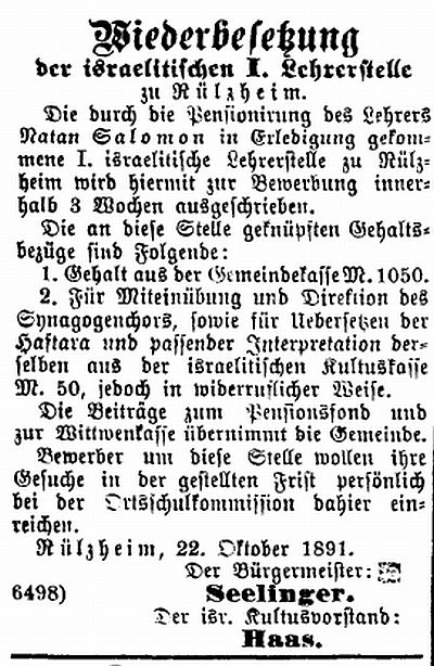 Die jüdische Gemeinde in Rülzheim war in den Jahrzehnten um die Mitte des 19.Jahrhunderts eine der mitgliederstärksten in der Südpfalz und zählte damals zeitweise nahezu 500 Angehörige.