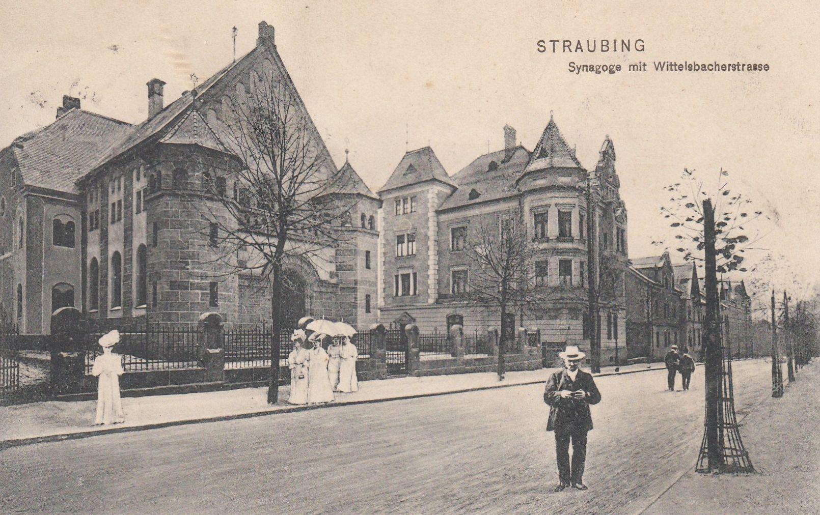 Im 20.Jahrhundert waren auch die Juden der Nachbarorte Deggendorf, Landshut, Passau, Plattling und Vilshofen der Straubinger Gemeinde angeschlossen. Im September 1907 wurde die im neoromanischen Stile gestaltete Straubinger Synagoge - unter öffentlicher Beteiligung - eingeweiht; zwei achteckige Türme mit krönenden Davidsternen flankierten ein mit Blattwerk verziertes Rundbogenportal, zu dem sieben Stufen hoch führten. Der Synagoge angebaut waren ein Gemeindehaus mit Schulräumen und Mikwe.