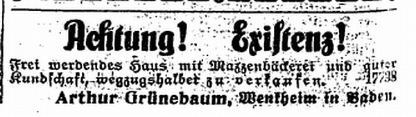 Im einzelnen können hier genannt werden (Stand um 1930/33): Viehhandlung Bernhard Grünebaum (Lindenstraße), Viehhandlung/Metzgerei Louis Grünebaum (Pfarrgasse), Viehhandlung Samuel Grünebaum (Herrenstraße), Viehhandlung/Landwirtschaft Samuel Grünebaum III (Herrenstraße), Altwarenhandlung Samuel Grünebaum IV (Frankenstraße 14), Viehhandlung/Metzgerei Simon Grünebaum (Obertorstraße), Textilgeschäft Abraham Hubert (Frankenstraße), Mazzenbäckerei Sigmund Lehmann (Lindenstraße), Textilgeschäft Hermann Schartenberg (Breite Straße und Lindenstraße), Handelsmann Lippmann Karpf (Obertorstraße) und Kaufmann Jakob Schuster (Hindenburgstraße).